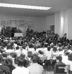 Mons.Moscato che predica con accanto Don Teodoro e persone che partecipano
