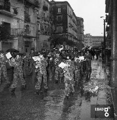 Bambini di una banda musicale di bersaglieri in via Matteo Ripa