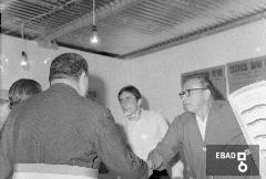 [Paolo Solimeno rappresentante dela Necchi macchine da cucire alla fiera Campionaria da la mano al senatore Vignola con il Sindaco Isaia Bonavoglia. Nota a cura di Mariano Pastore]