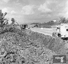 Lavori di escavazione del fosso per la delimitazione dell'autostrada