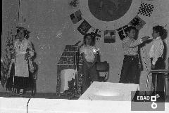 Bambini ed educatrici della colonia impegnati in esercitazioni ginniche nel chiostro della Certosa