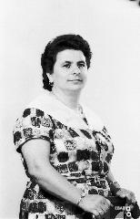 Donna anziana seduta dietro ad un tavolo