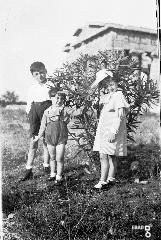 Esponenti del Partito Nazionale Fascista e bambini della colonia marina "Francesco Marino" mentre eseguono il saluto fascista nei pressi del complesso monumentale di Sant'Antonio