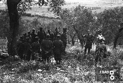 Esterno palazzo S.Agostino - Gruppo di giovani fascisti e autoritā militari.