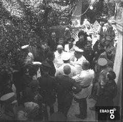 Principe Umberto, personalità civili e militari su un palco. Folla che partecipa