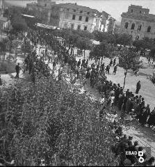Corteo funebre con ecclesiastici ed autorità militari.Via Matteotti