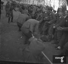 Esterno-" Educatorio Principi di Piemonte" saluto fascista di balilla ad autoritā militari in visita