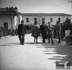 Autorità militari e civili. Scambio di un mazzo di fiori tra gerarchi