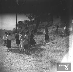 Militari in posa mentre mangiano il rancio nella gavetta,nel chiostro della Certosa