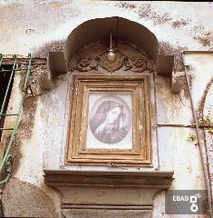 Facciata su Via Castello del palazzo nobiliare della famiglia Martucci (XV secolo) e sullo sfondo la cappella di Santa Maria ad Intra, Anni 50