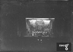 LASTRA CON EMULSIONE IN GRAN PARTE ROVINATA (Vista di un palcoscenico con attori in costume teatrale)