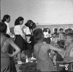 Bambini della colonia che assistono ad una funzione religiosa all'aperto