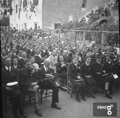 Manifestazione folkloristica nel piazzale antistante ad un edificio