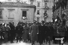 Il generale Badoglio accompagnato da militari e civili in visita a Salerno