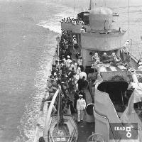 Equipaggio militare a bordo della nave "Bo Baleno" e sullo sfondo vista di un'imbarcazione