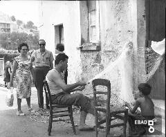 Quadro raffigurante pescatori intenti alla tessitura delle reti