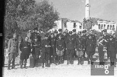 Foto di ufficiali e autorità militari nei pressi di un edificio
