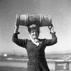 Interno della mostra-Vista di una particolare scultura raffigurante una contadina