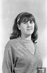 Ragazza accanto ad un tavolo con opuscoli sacri