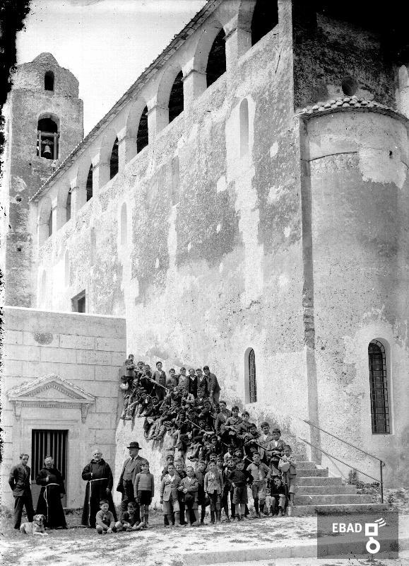 Scolaresca con maestro sulle scale di accesso al sagrato