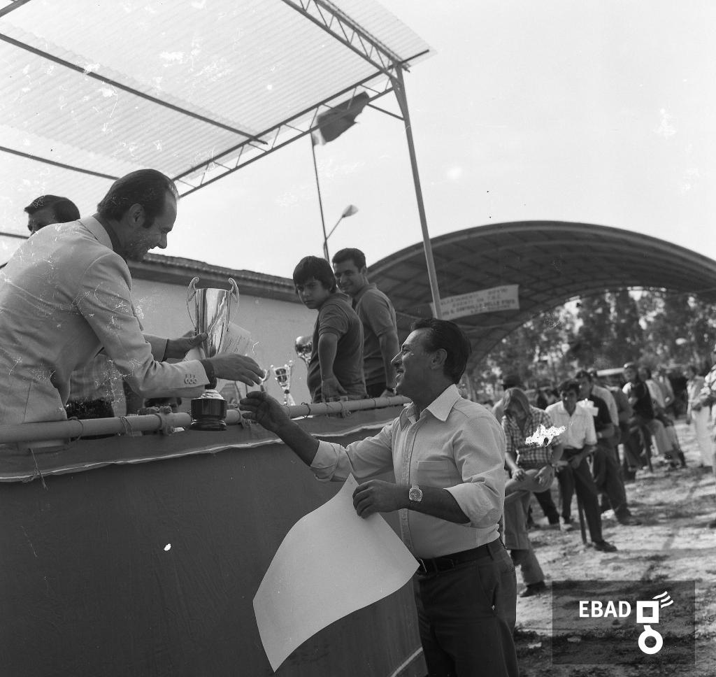 Palchetto con giuria che consegna coppe e attestati agli allevatori