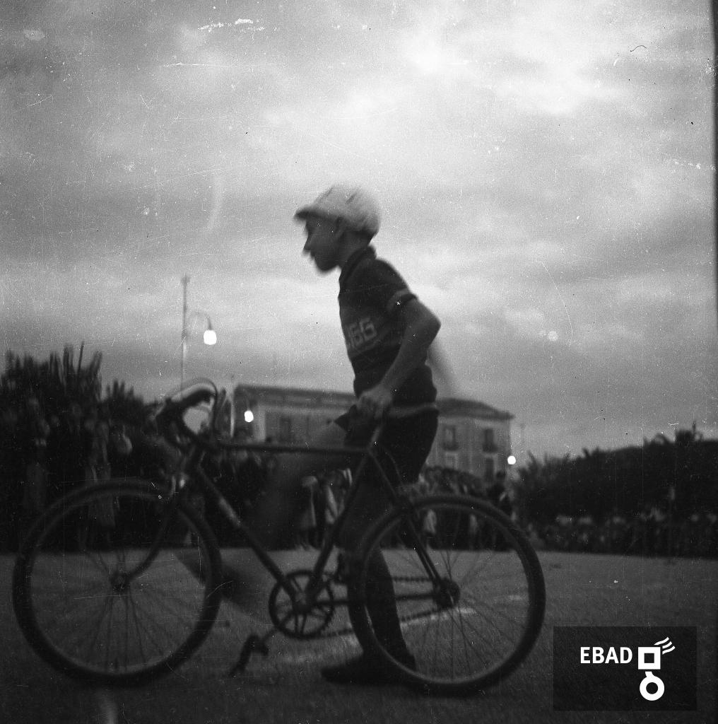 Piccolo ciclista e persone varie in via Giacomo Matteotti alla fine di una gara