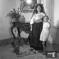 Insegnante tra due ragazzi in costume.Visconti Aldo