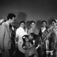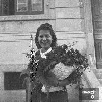 Congrega tra cui un bimbo che reca una composizione di fiori