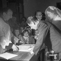 Persone vicino allo sposa intenta a firmare - matrimonio